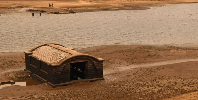 Заброшенная деревня Дервент, скрытая под водой уже более 80 лет, время от времени вновь появляется на поверхности, словно напоминая о жизни, которая в ней когда-то кипела.