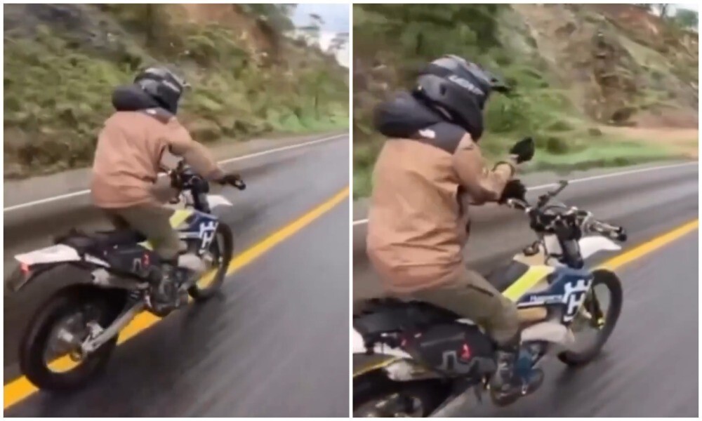 Во время движения один мотоциклист решил подшутить над другим.